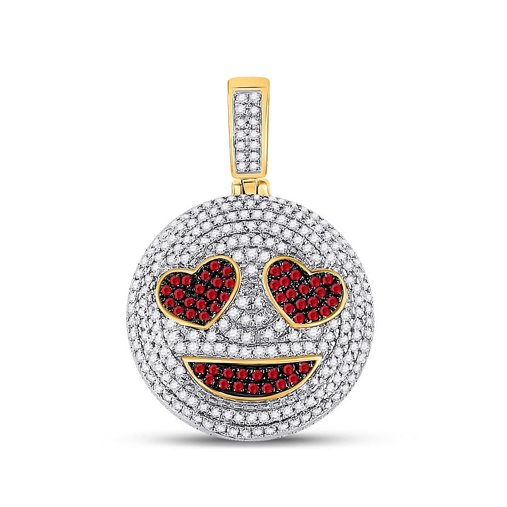 10K YELLOW GOLD ROUND RUBY EMOJI SMILEY HEART CHARM PENDANT 1-1/3 CTTW