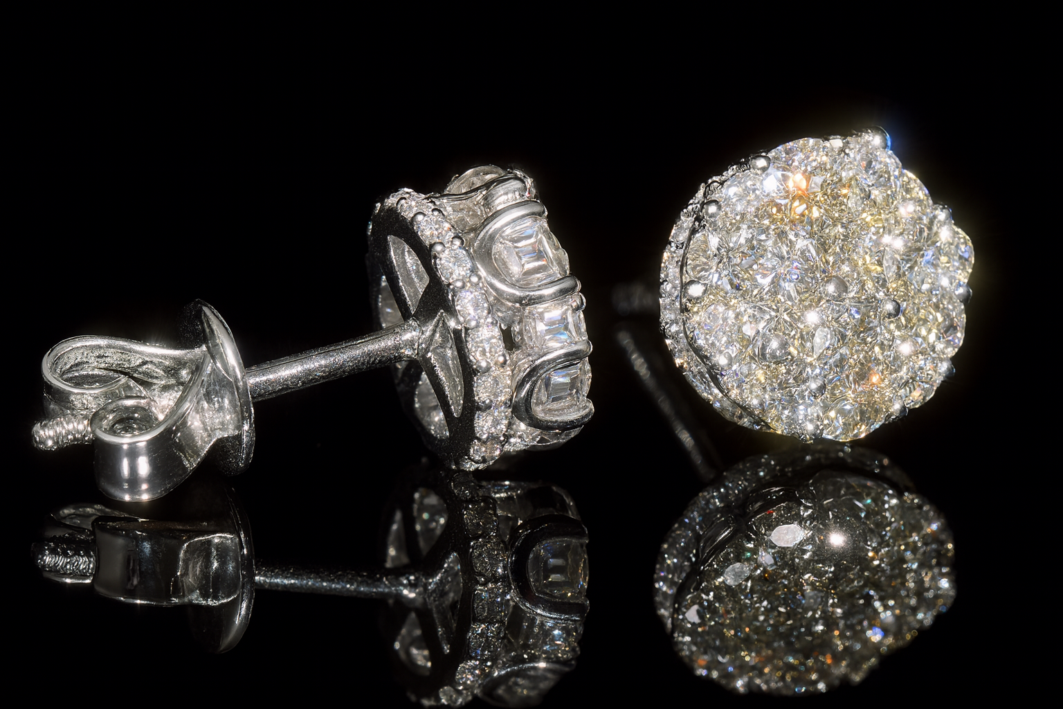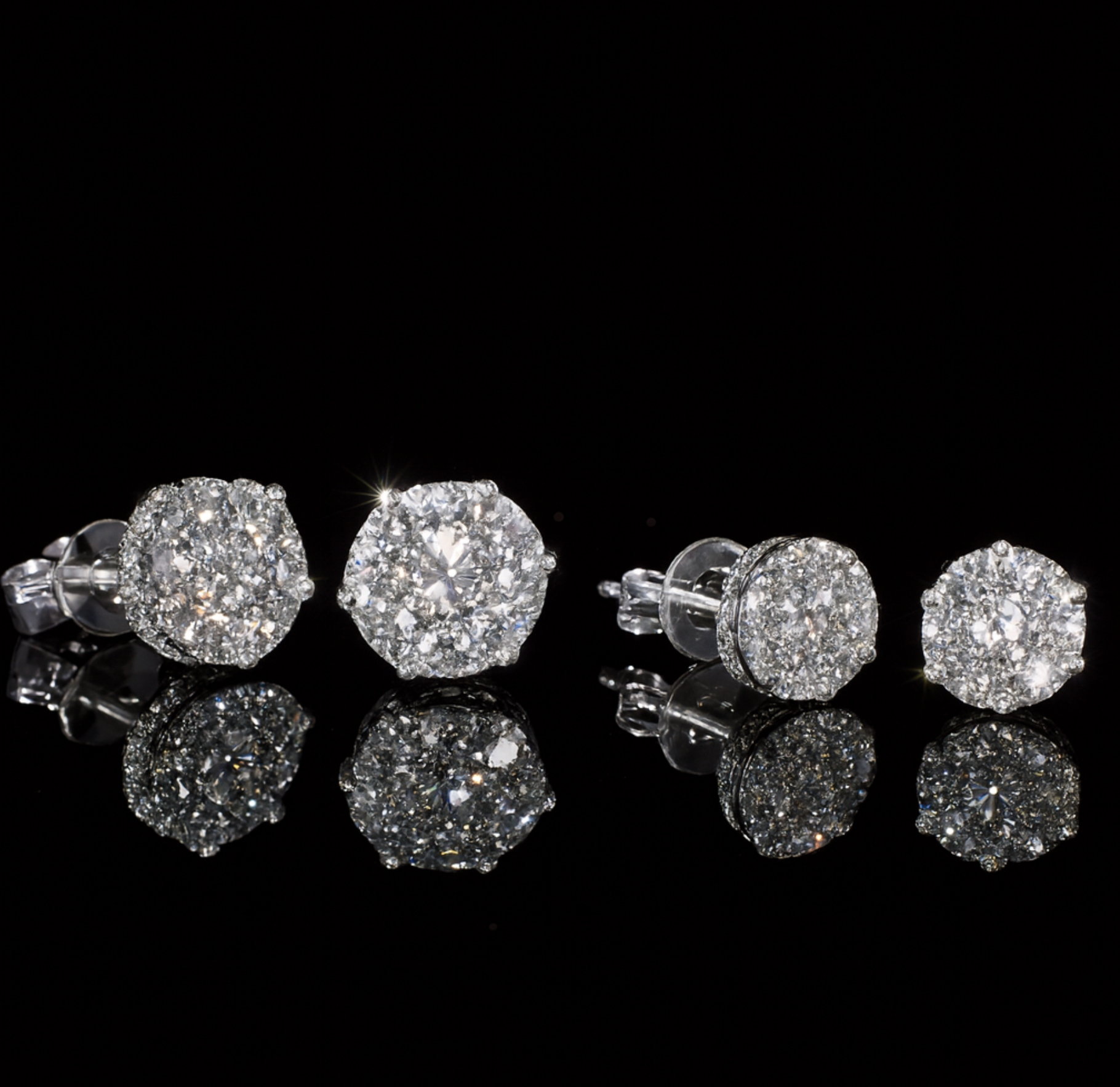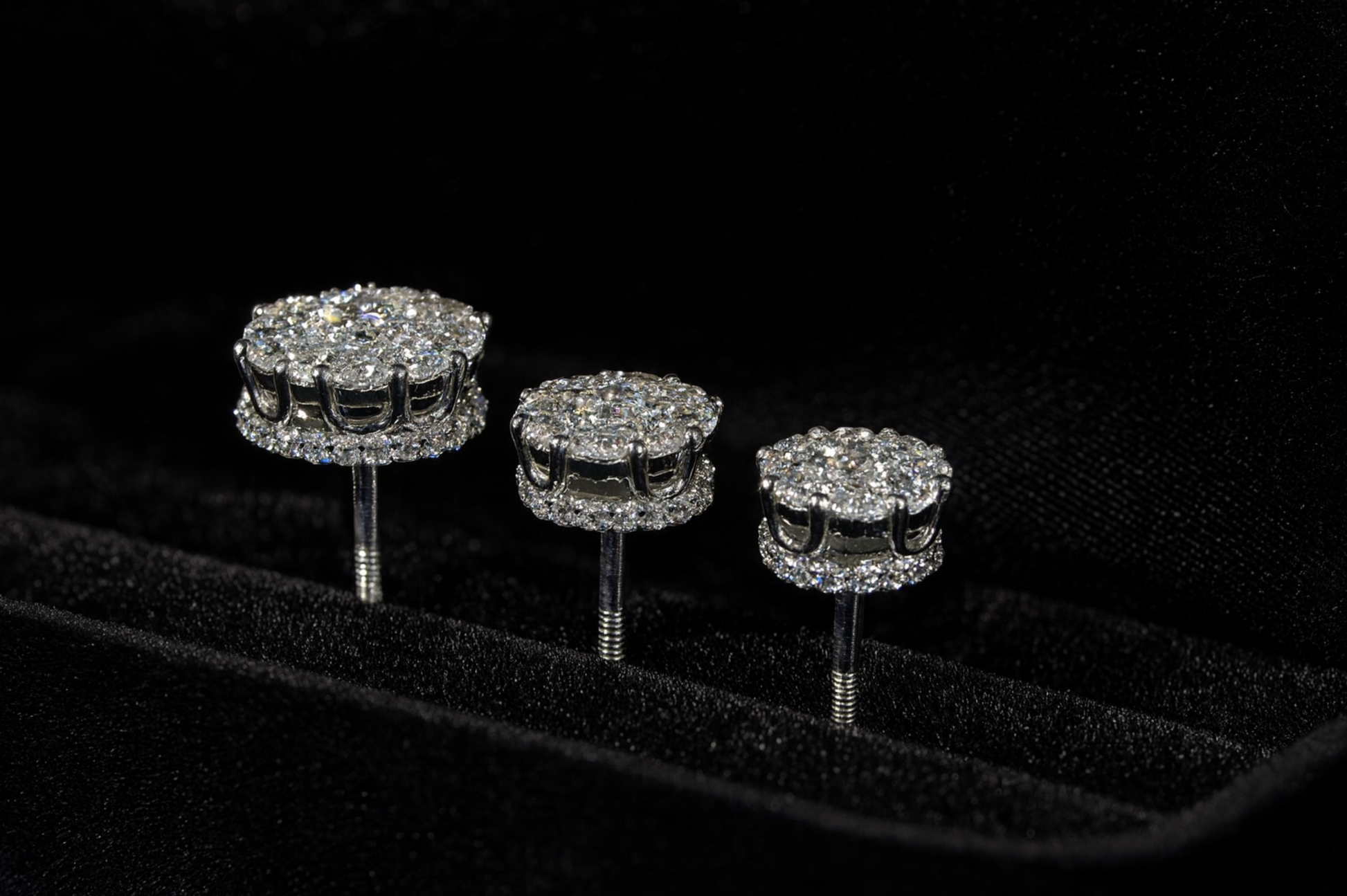 The Cluster Crown Stud design showcases multiple brilliant stones arranged in a sophisticated crown pattern, creating maximum sparkle and visual impact. Each stone is precisely set to ensure optimal light reflection, while the cluster formation adds dimension and luxury to the classic stud earring style.