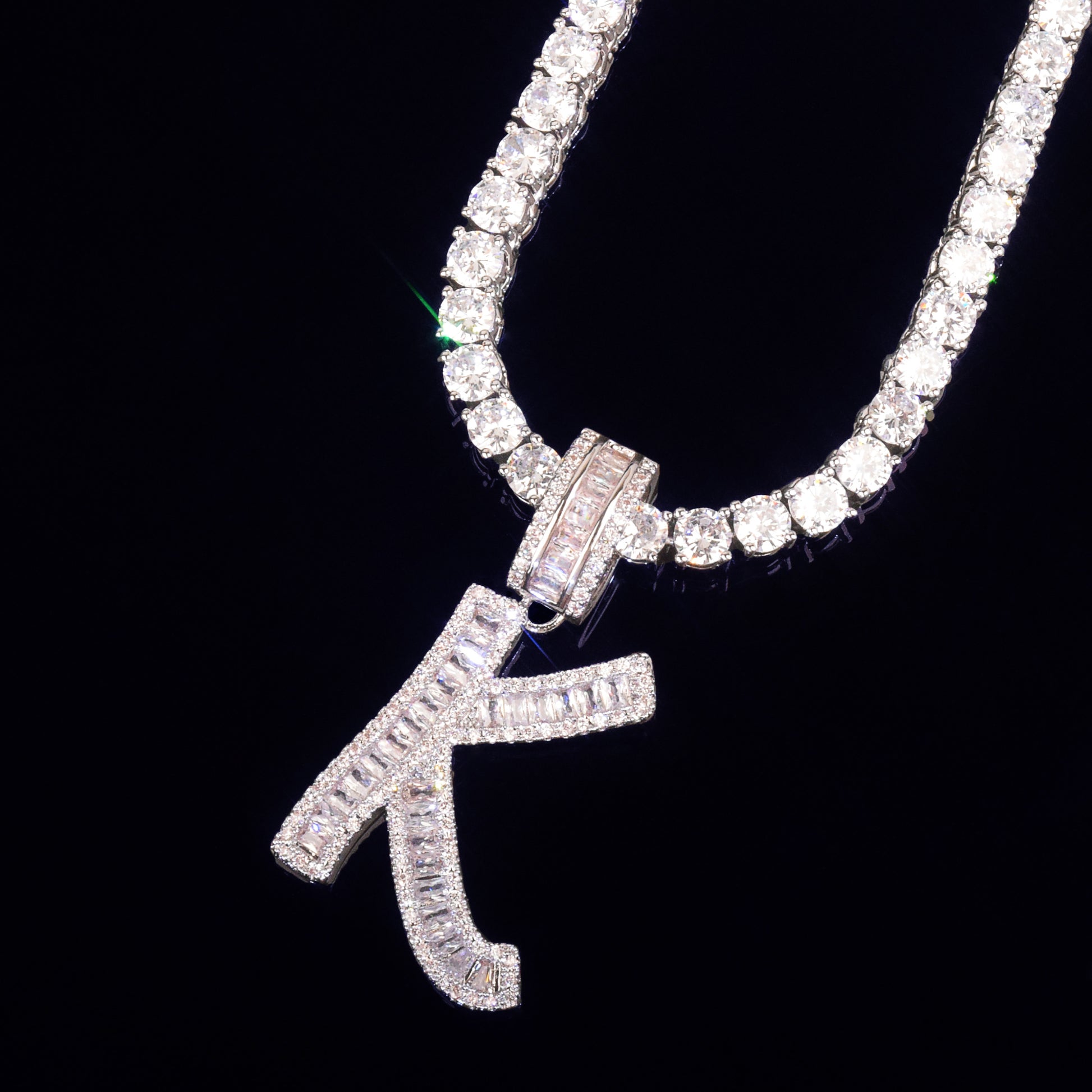 Single Baguette Initials Letters Pendant With 4mm Tennis Chain