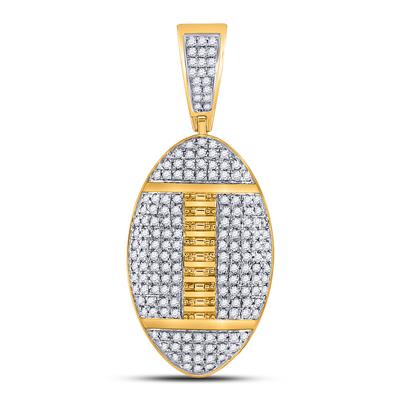 10K YELLOW GOLD ROUND DIAMOND FOOTBALL CHARM PENDANT 1-1/3 CTTW