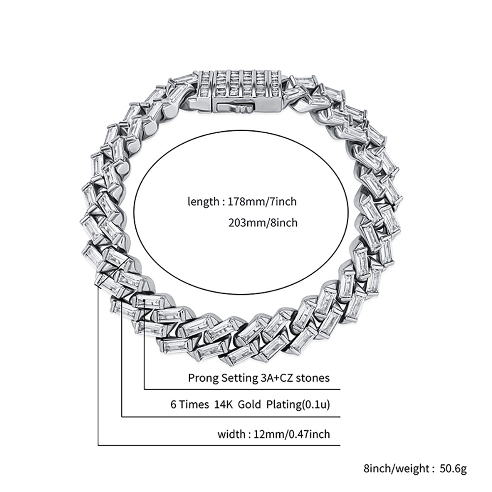 So don't miss out on this must-have accessory - grab our 12MM Baguette Channel Set Cuban Bracelet before it's gone!