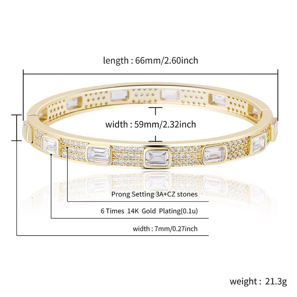Made with high quality cubic zirconia stones, this bracelet has serious bling factor. The 14k gold plating ensures a luxe look that will last. And at 7mm wide, it's just the right size to be noticed without being over-the-top. Whether you're dressing up for a night out or just accentuating your everyday style, this bracelet is the perfect finishing touch. So don't miss out on this must-have fashion accessory. Grab our 7mm Luxury Iced Out Cubic Zirconia Bracelet today!