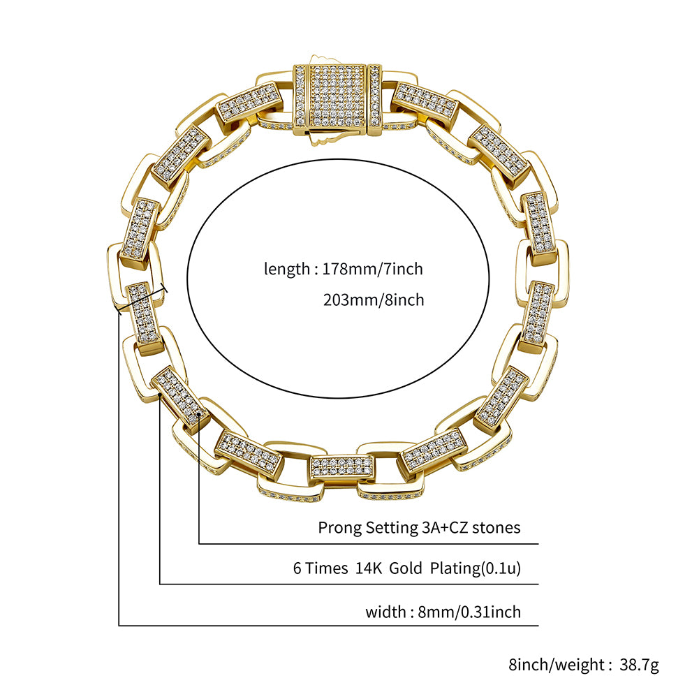 Who says being a bit chilly has to be a bad thing? With our 8mm Ice Box Link Chain Bracelet, you can rock the snow like never before – and still look smoking hot while doing it. This bracelet is made with high quality gold plating and sparkling cubic zirconia stones, so you know you're getting the best of the best.