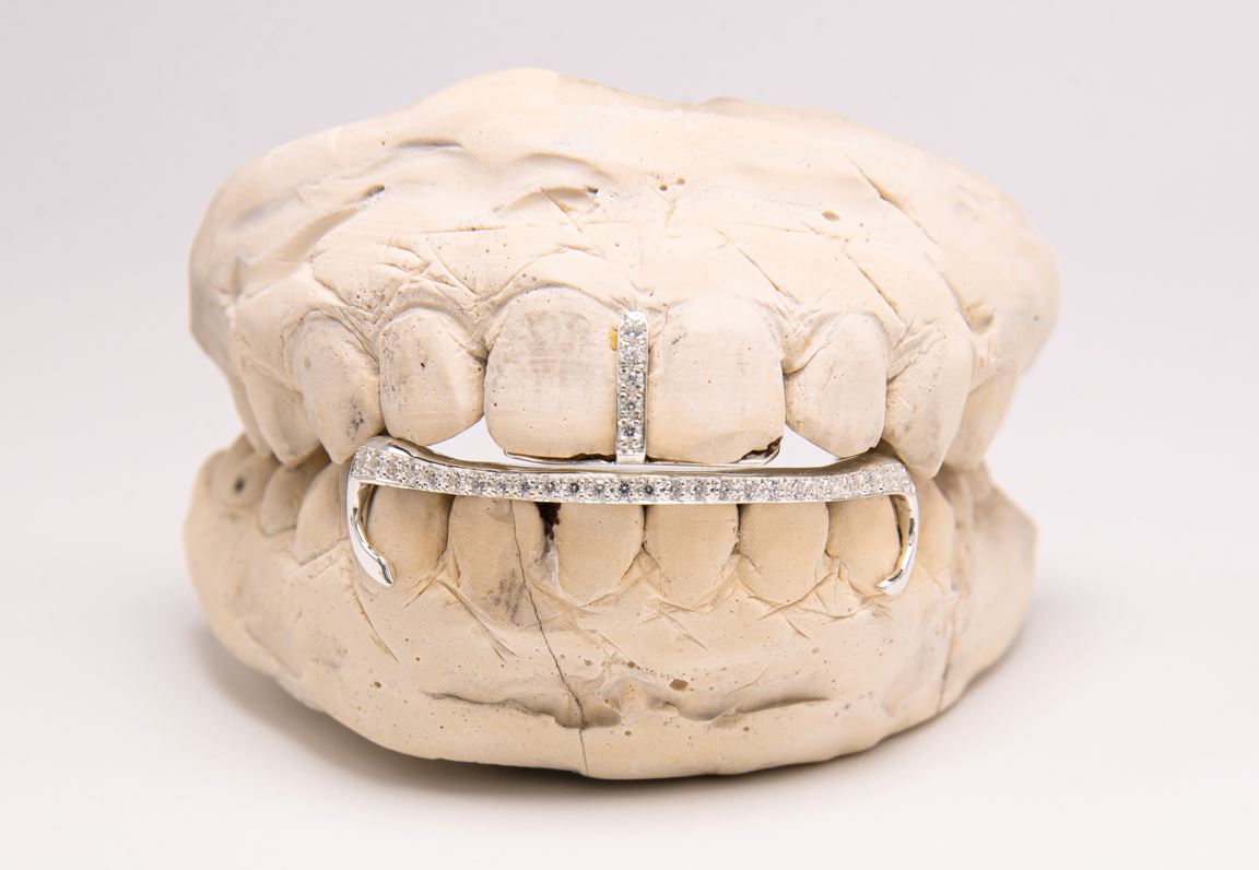 This grillz style, popularized by the one and only Kim Kardashian, is tasteful yet glamorous. Also available in Yellow Gold, Rose Gold and Sterling Silver. These diamond grillz are made in either 10K, 14K or 18K solid gold.